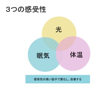 生体リズムは「光・眠気・体温」の3つのうちの感受性が高いもので反応します。